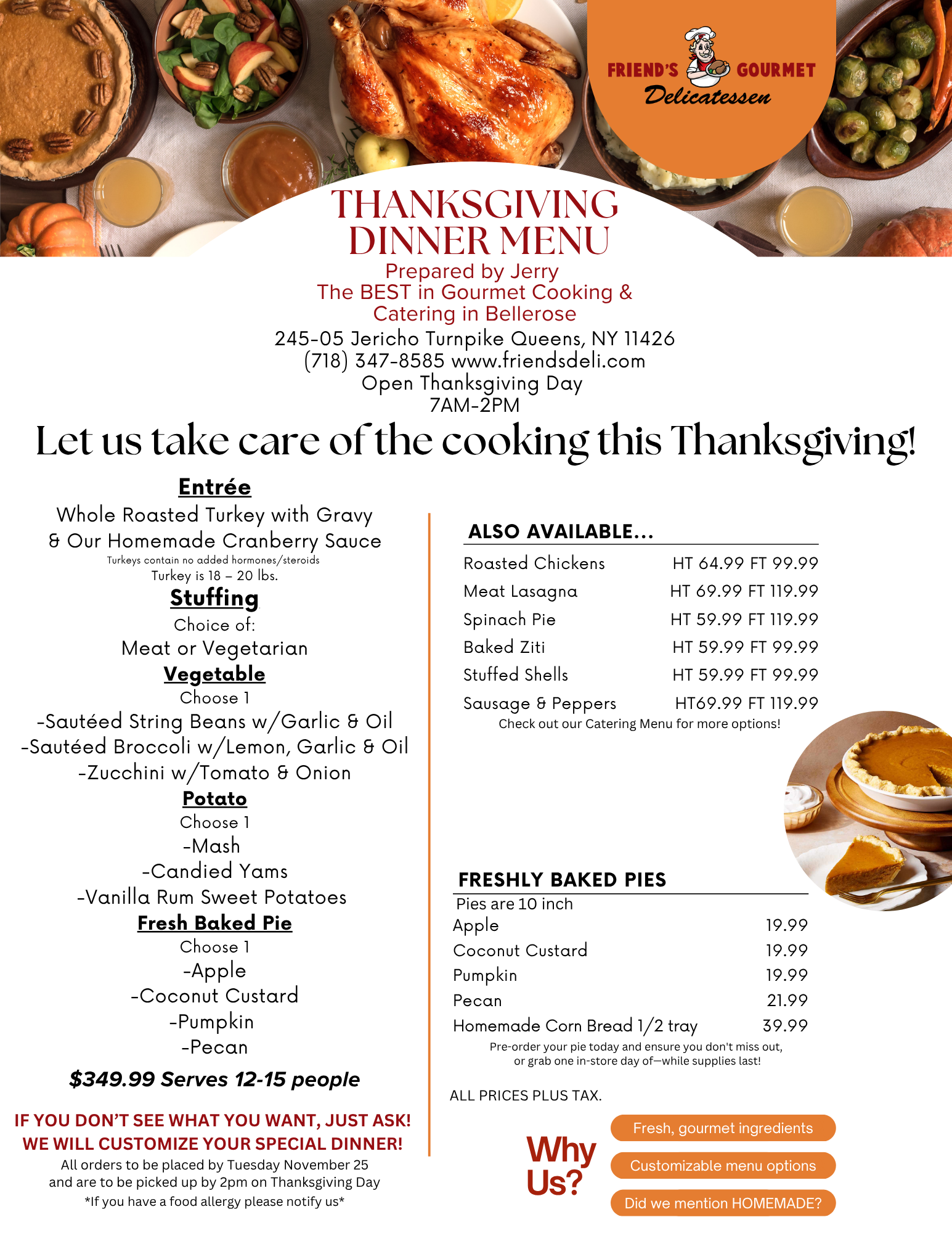 Friend’s Gourmet Deli located in Bellerose, NY is the best place to go for not just our delicious sandwiches but also for our fresh salads, soups, pastas and other fresh dishes. At Friend’s Gourmet Deli you can eat in, take out. Local Delivery available, give us a call! Find us on Doordash, GrubHub, & UberEats!